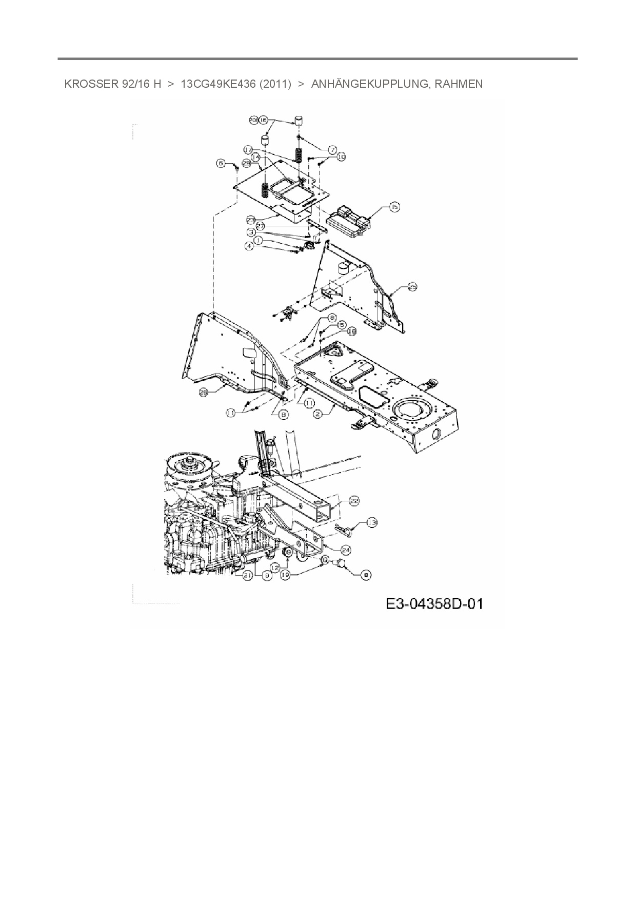 Ersatzteile für Rasentraktor Oleo-Mac Krosser 92/16 H aus der Zeichnung Anhängekupplung, Rahmen: