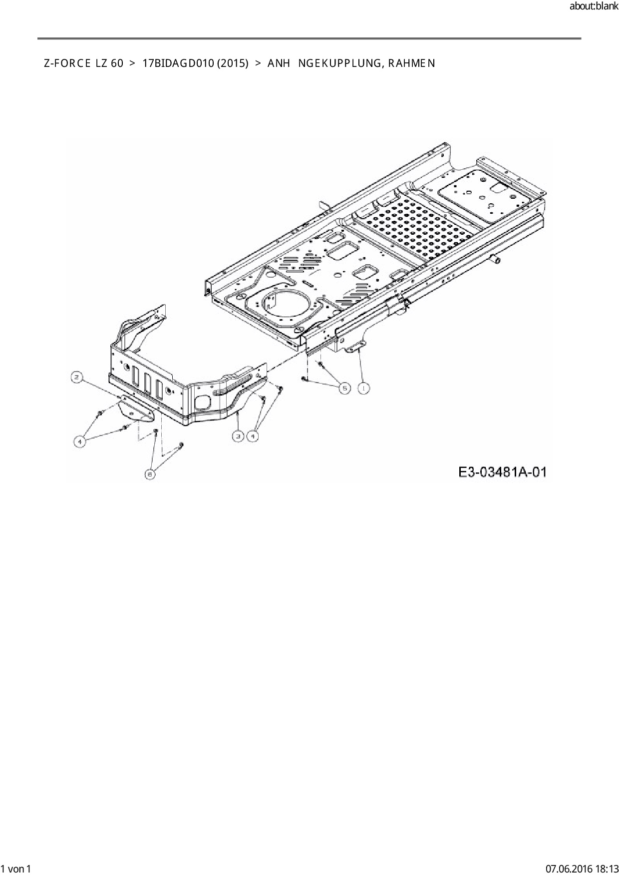 Ersatzteile für Zero Turn Cub Cadet Z-Force LZ 60 aus der Zeichnung Anhängekupplung, Rahmen: