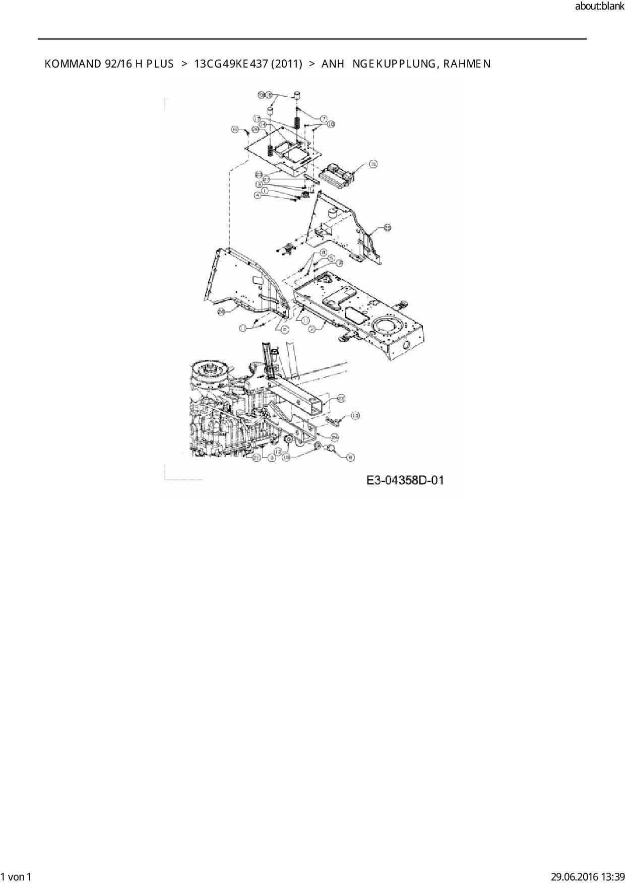 Ersatzteile für Rasentraktor EFCO Kommand 92/16 H Plus aus der Zeichnung Anhängekupplung, Rahmen: