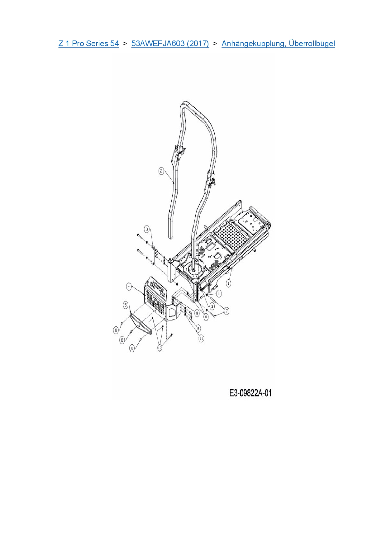 Ersatzteile für Zero Turn Cub Cadet Z 1 Pro Series 54 aus der Zeichnung Anhängekupplung, Überrollbügel: