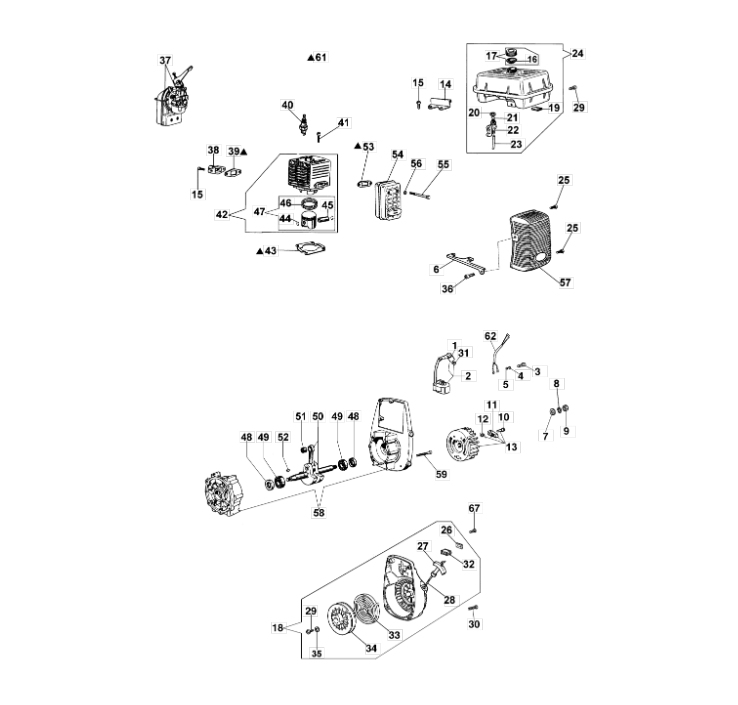 Hier finden Sie alle Ersatzteile für Oleo-Mac Motorpumpe SC 33 aus der Zeichnung für Anlasser und Motor: