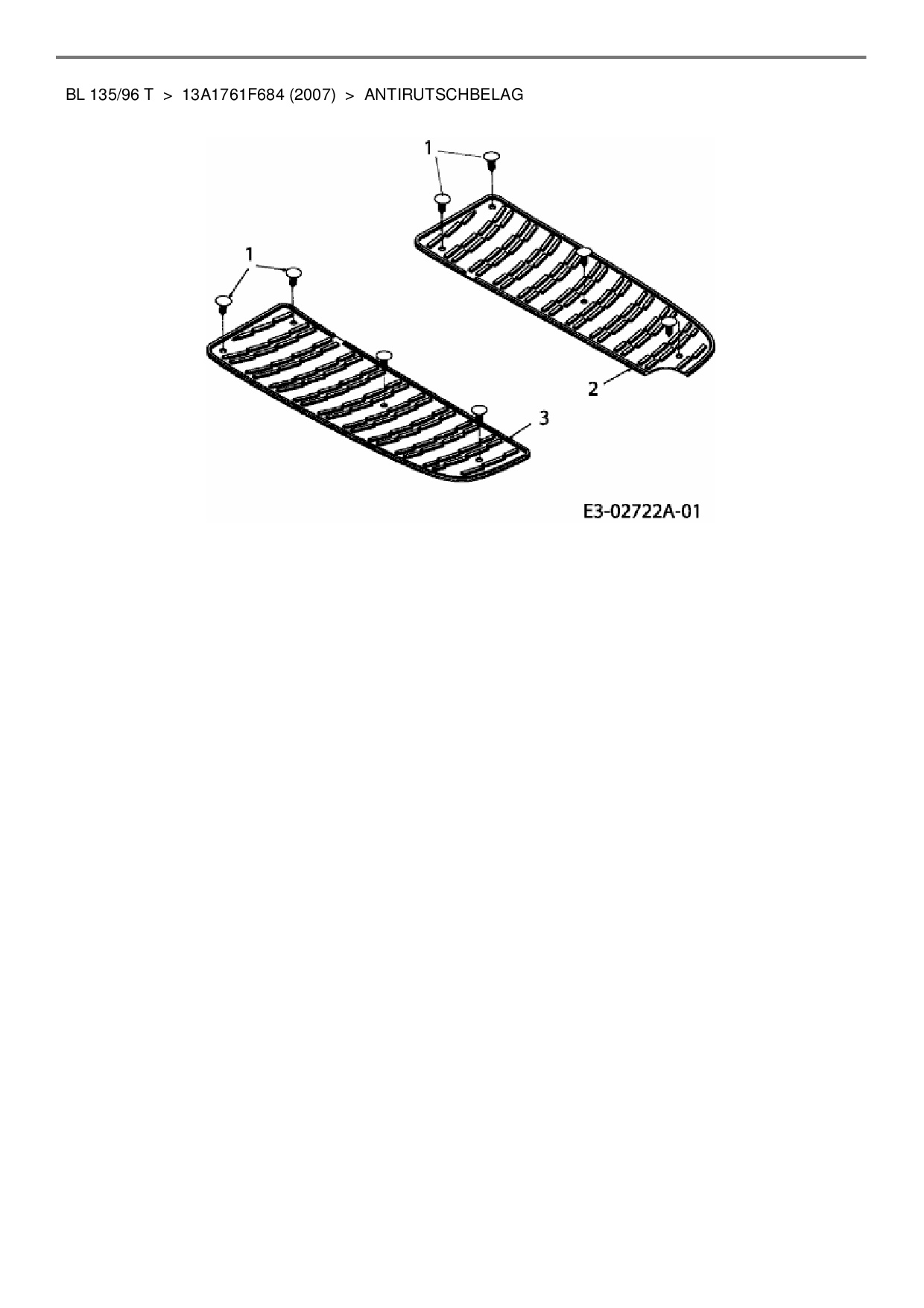 Ersatzteile für Rasentraktor Bolens BL 135/96 T aus der Zeichnung Antirutschbelag: