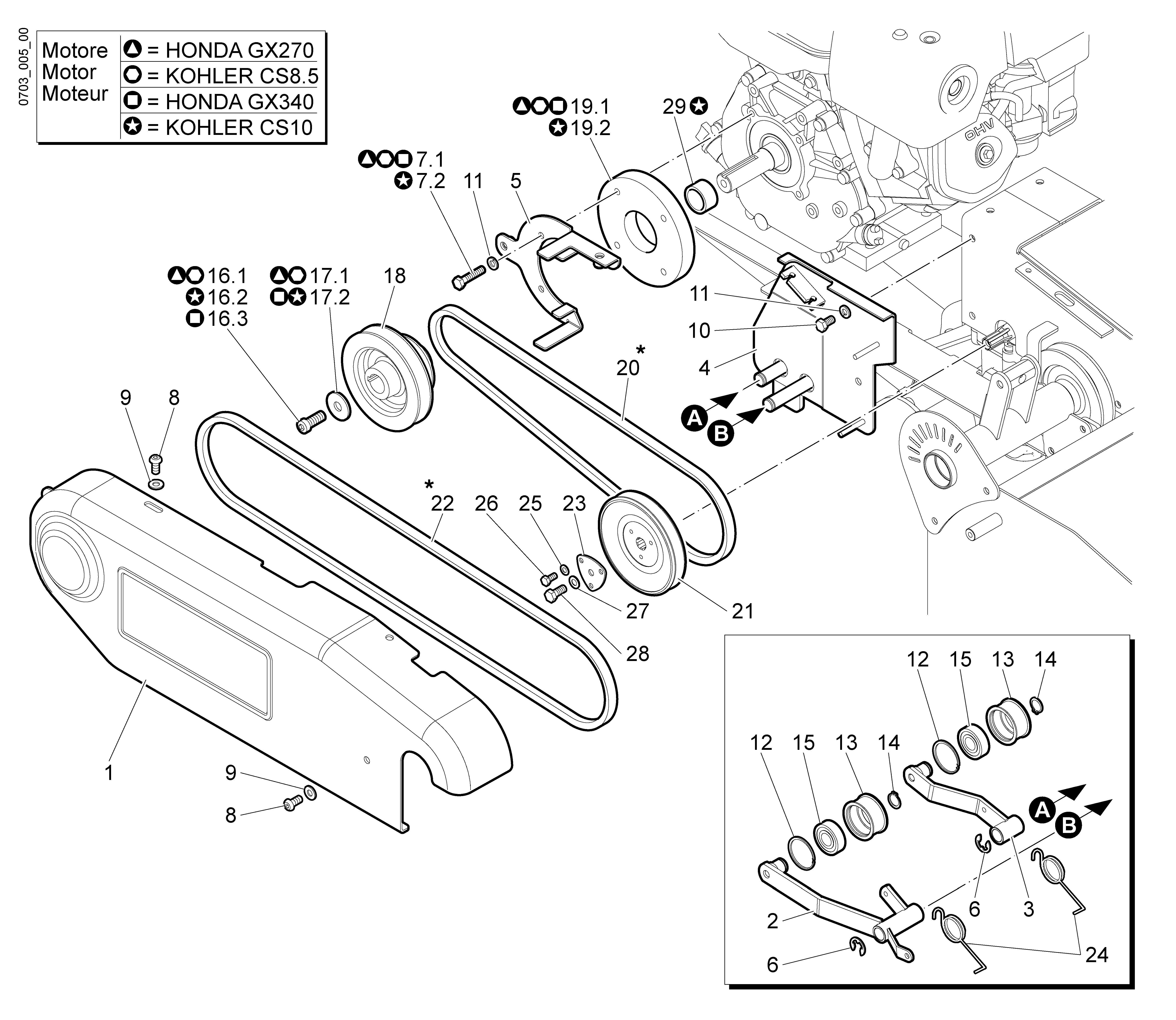 Hier finden Sie alle Ersatzteile für Bertolini Schlegelmulcher BTS 80 (Fino/Until 2009) aus der Zeichnung für Antrieb (1/2):