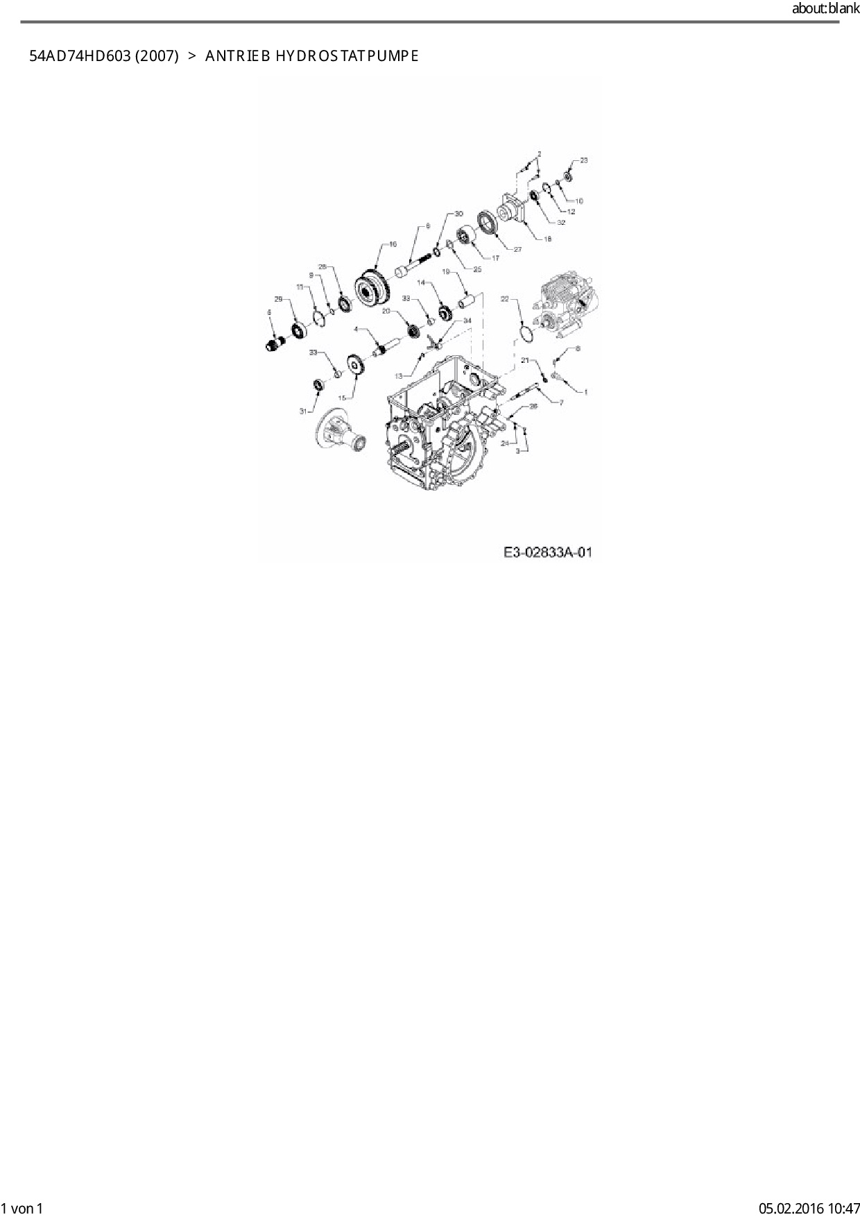 Ersatzteile für Kompakttraktor Cub Cadet HDS 6284 aus der Zeichnung Antrieb Hydrostatpumpe: