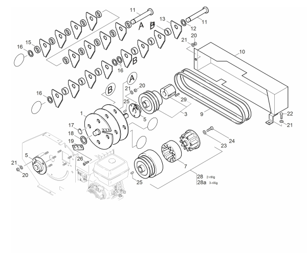 Zeichnung von Erco Häcksler GHX-3000 Antrieb, Messer: