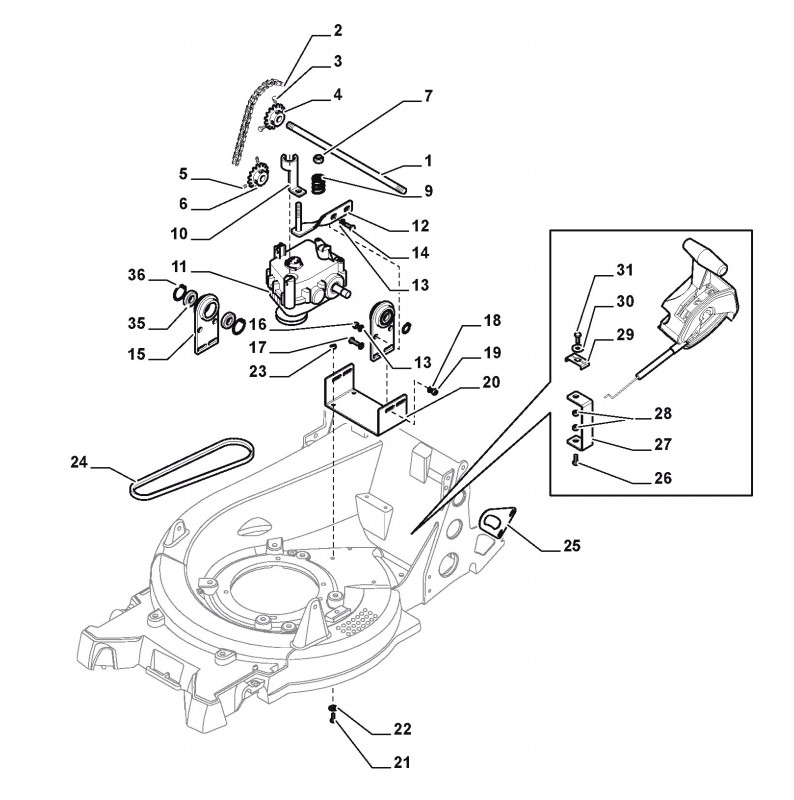 Hier finden Sie alle Ersatzteile von Castelgarden Benzinrasenmäher ab 2010 PRO 60 MHV BBC (ID 292533038/10) aus der Zeichnung Antrieb: