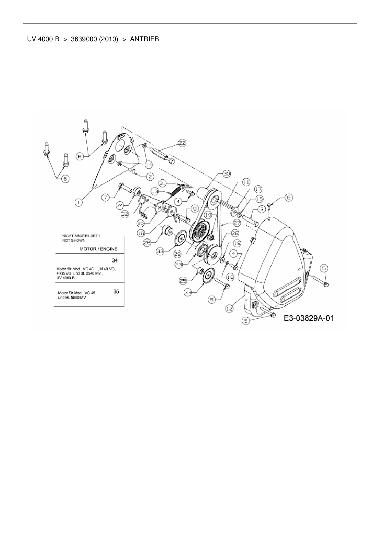 Download Ersatzteil-Zeichnung Wolf-Garten UV 4000 B Zeichnung Antrieb (PDF-Format)