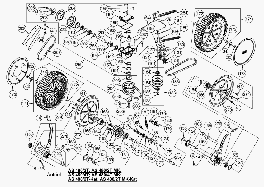 Hier finden Sie alle Ersatzteile von AS-Motor Profi-Rasenmäher AS 480/2T ab FNr. 018908050001 aus dem Zeichnungsblatt Antrieb: