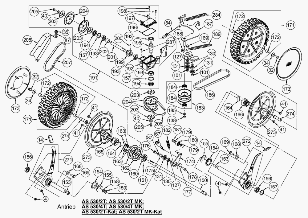 Hier finden Sie alle Ersatzteile von AS-Motor Profi-Rasenmäher AS 530/2T MK ab FNr. 019407202001 aus dem Zeichnungsblatt Antrieb: