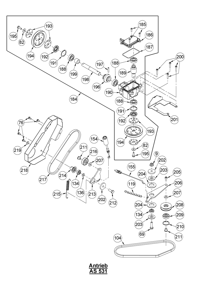 Hier finden Sie alle Ersatzteile von AS-Motor Profi-Rasenmäher AS 531/2T MK-Kat VarioPro ab FNr. 024412100001 aus dem Zeichnungsblatt Antrieb: