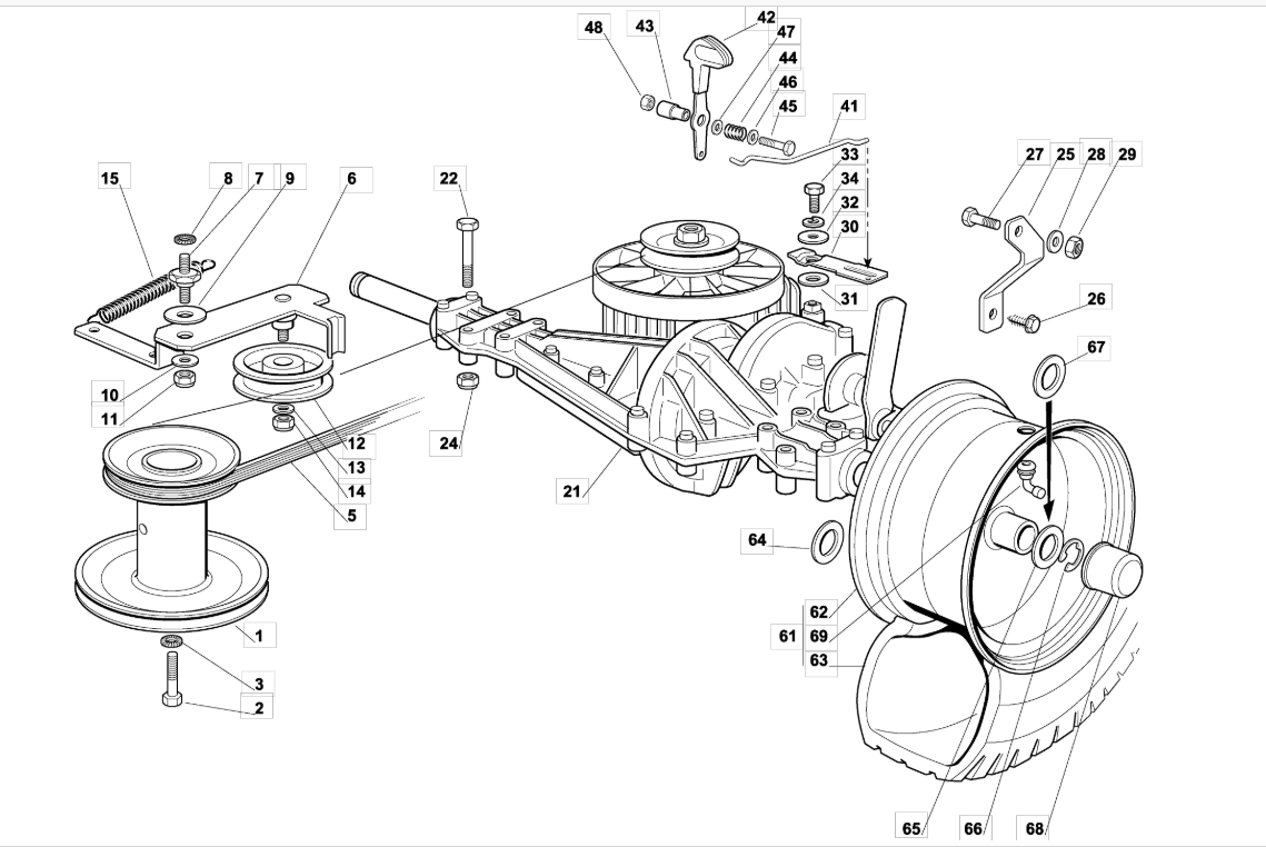 Hier finden Sie alle Ersatzteile für Oleo-Mac Rasentraktor OM 72C/12,5H Cat.2004 aus der Zeichnung für Antrieb: