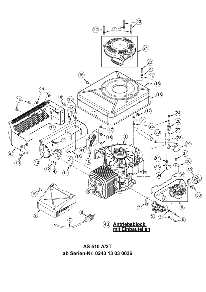 Zeichnung von AS-Motor Mulch-Rasenmäher AS 510 2T A und AS 510 A/2T ProClip ab FNr. 024313030036: