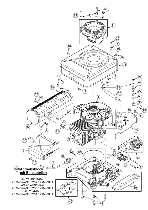 Hier finden Sie alle Ersatzteile von AS-Motor Allmäher AS 21 2T und AS 21-165/3-Kat ab FNr. 020215080001 aus dem Zeichnungsblatt Antriebsblock: