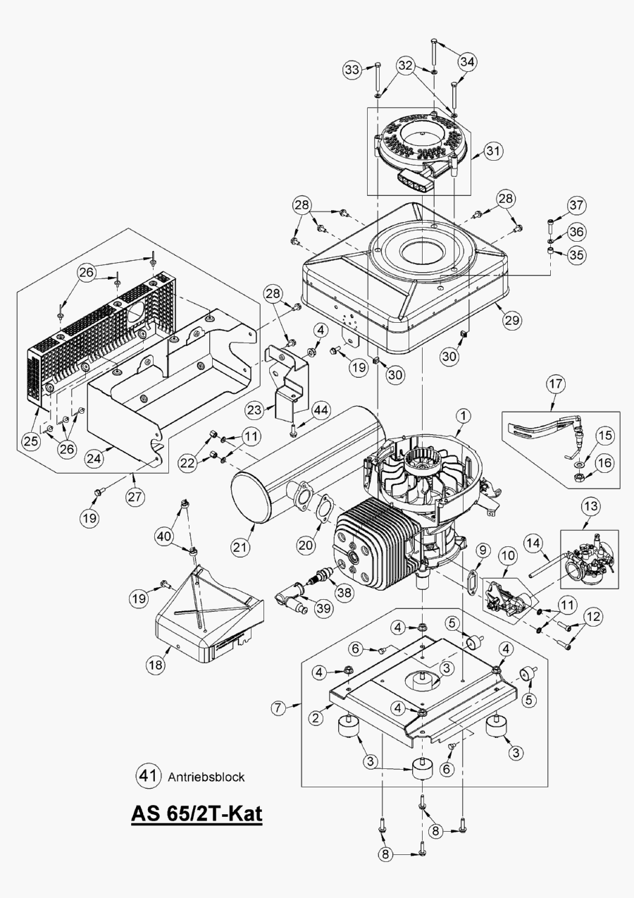 Hier finden Sie alle Ersatzteile von AS-Motor Allmäher AS 65 2T und AS 65/2T-Kat ab FNr. 019908020001 aus dem Zeichnungsblatt Antriebsblock: