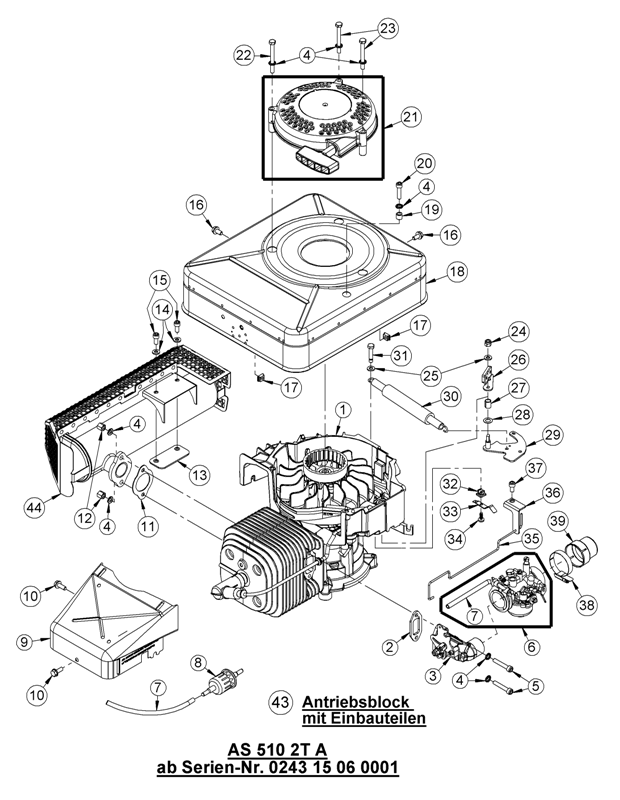 Zeichnung von AS-Motor Mulch-Rasenmäher AS 510 2T A und AS 510 A/2T ProClip ab FNr. 024315070021: