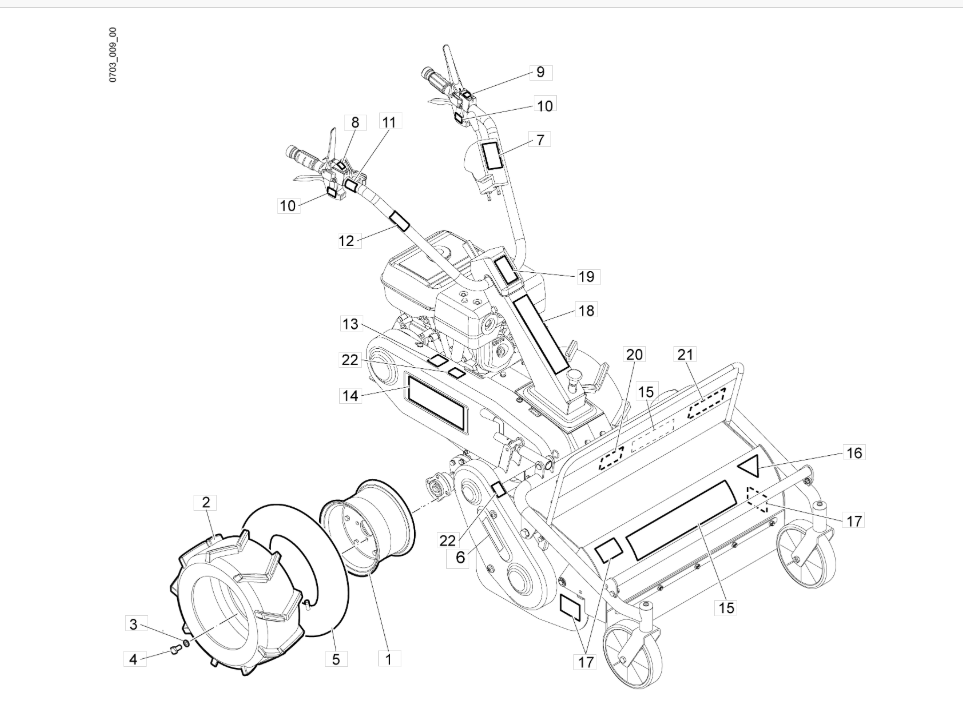 Hier finden Sie alle Ersatzteile für Oleo-Mac Schlegelmulcher WB 65 HR 11 aus der Zeichnung für Antriebsrad - Schild: