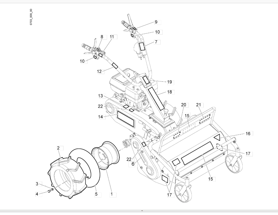 Hier finden Sie alle Ersatzteile für Oleo-Mac Schlegelmulcher WB 80 HR 11 aus der Zeichnung für Antriebsrad - Schild: