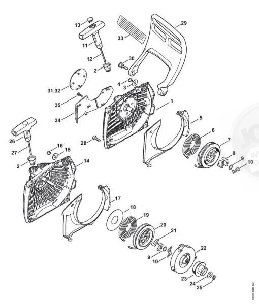 Hier finden Sie alle Ersatzteile von Stihl Benzin-Motorsägen MS 261 C-M VW der Zeichnungsgruppe Anwerfvorrichtung, Handschutz: