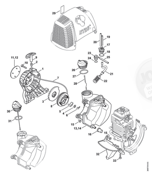 Hier finden Sie alle Ersatzteile von Stihl Kombi- MultiSystem KM 130 R der Zeichnungsgruppe Anwerfvorrichtung, Kraftstofftank: