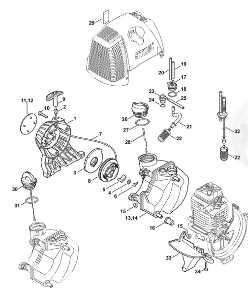 Hier finden Sie alle Ersatzteile von Stihl Motorsensen und Freischneider FS 130 der Zeichnungsgruppe Anwerfvorrichtung, Kraftstofftank: