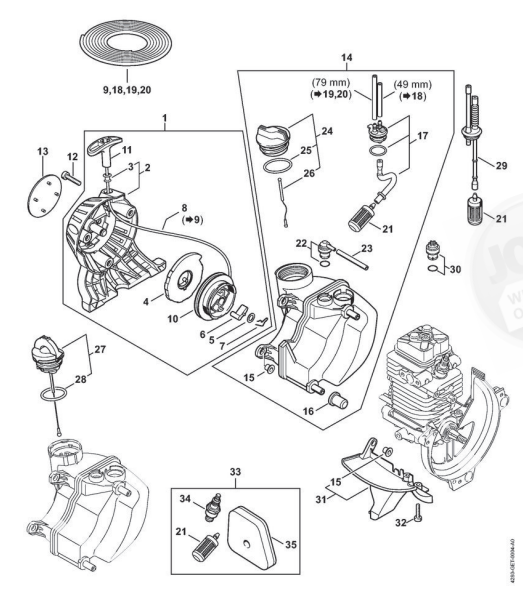 Hier finden Sie alle Ersatzteile von Stihl Heckenscheren HL 100 der Zeichnungsgruppe Anwerfvorrichtung, Kraftstofftank:
