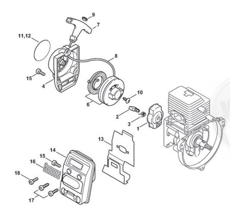 Hier finden Sie alle Ersatzteile von Stihl Kombi- MultiSystem KM 85 der Zeichnungsgruppe Anwerfvorrichtung, Schalldämpfer:
