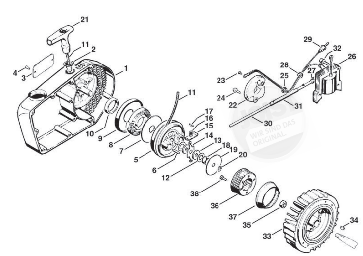 Hier finden Sie alle Ersatzteile von Stihl Benzin-Motorsägen 075, 075 AVEQ der Zeichnungsgruppe Anwerfvorrichtung, Zündanlage: