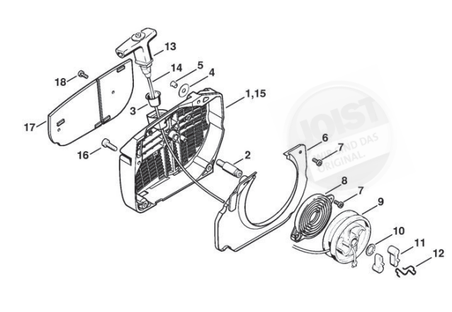 Hier finden Sie alle Ersatzteile von Stihl Benzin-Motorsägen MS 650 der Zeichnungsgruppe Anwerfvorrichtung: