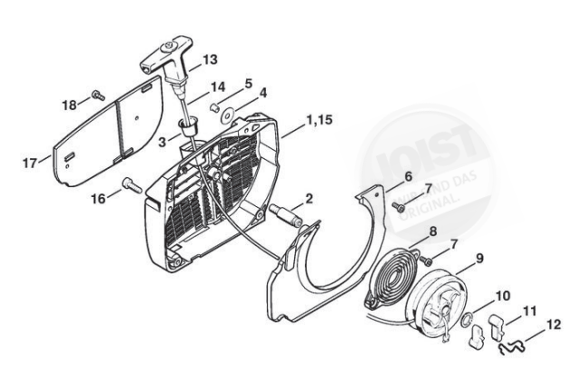 Hier finden Sie alle Ersatzteile von Stihl Benzin-Motorsägen MS 660 der Zeichnungsgruppe Anwerfvorrichtung: