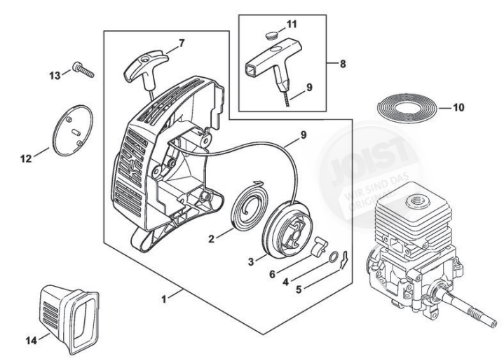 Hier finden Sie alle Ersatzteile von Stihl Kombi- MultiSystem KM 55 der Zeichnungsgruppe Anwerfvorrichtung: