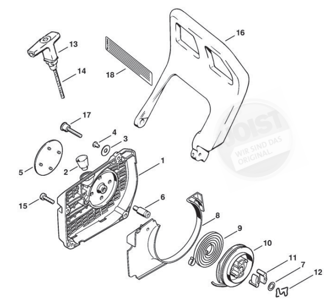 Hier finden Sie alle Ersatzteile von Stihl Benzin-Motorsägen 034 der Zeichnungsgruppe Anwerfvorrichtung: