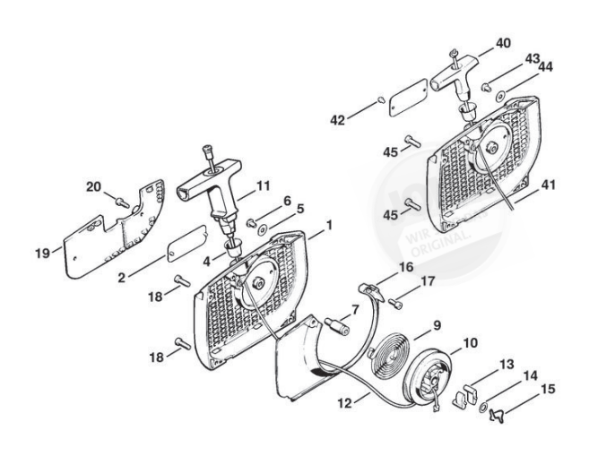 Hier finden Sie alle Ersatzteile von Stihl Benzin-Motorsägen 044 der Zeichnungsgruppe Anwerfvorrichtung: