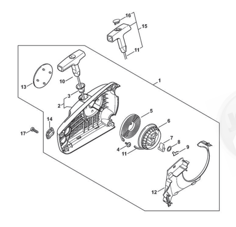 Hier finden Sie alle Ersatzteile von Stihl Benzin-Motorsägen MS 194 T der Zeichnungsgruppe Anwerfvorrichtung: