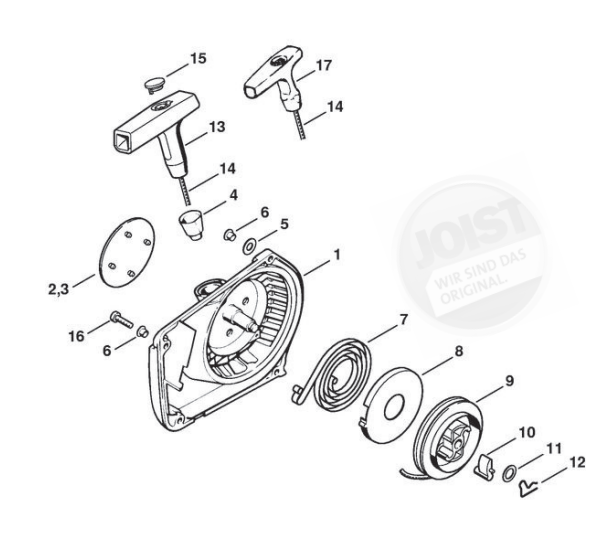 Hier finden Sie alle Ersatzteile von Stihl Benzin-Motorsägen MS 260 C-B W der Zeichnungsgruppe Anwerfvorrichtung: