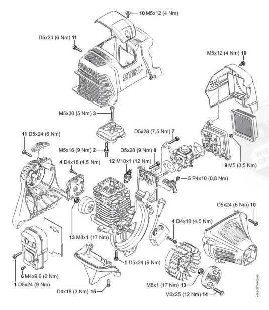 Hier finden Sie alle Ersatzteile von Stihl Hochentaster und Zubehör HT 102 der Zeichnungsgruppe Anziehdrehmomente (1):