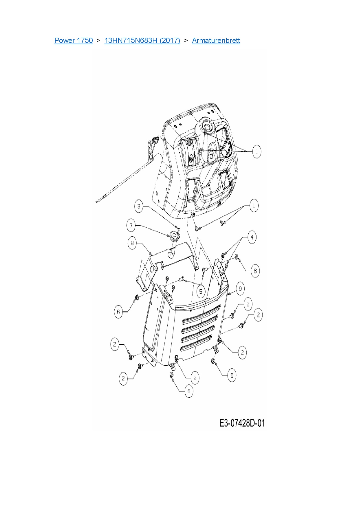 Ersatzteile für Rasentraktor MTD Power 1750 aus der Zeichnung Armaturenbrett (2):