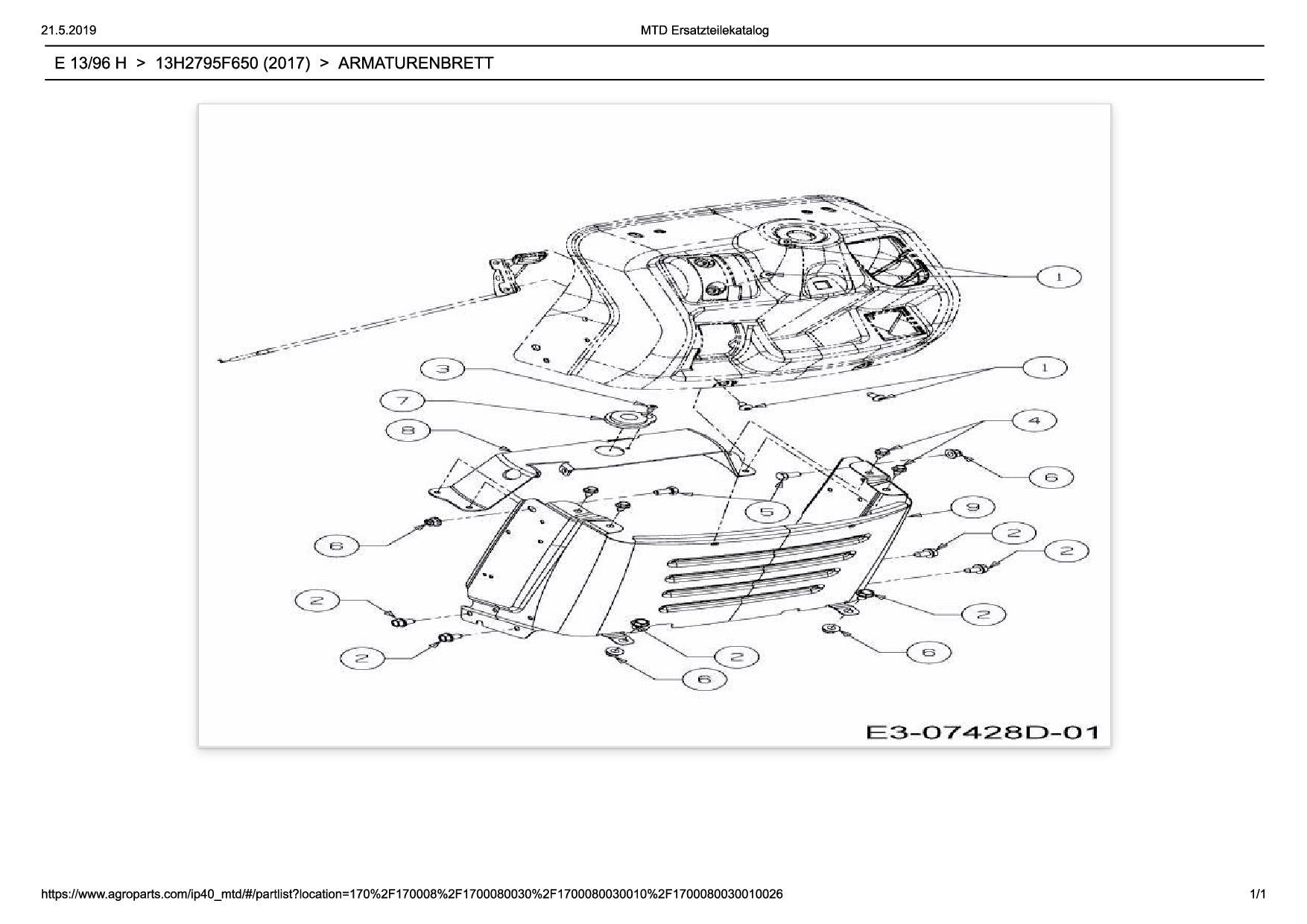 Download Ersatzteil-Zeichnung Wolf-Garten Expert E 13/96 H Zeichnung Armaturenbrett (2) (PDF-Format)