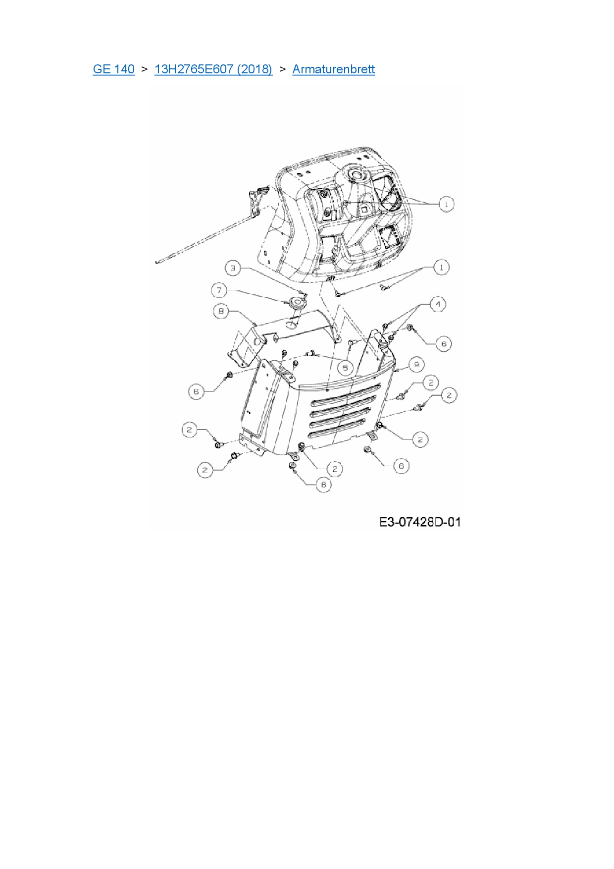 Ersatzteile für Rasentraktor Blisar GE 140 aus der Zeichnung Armaturenbrett (2):