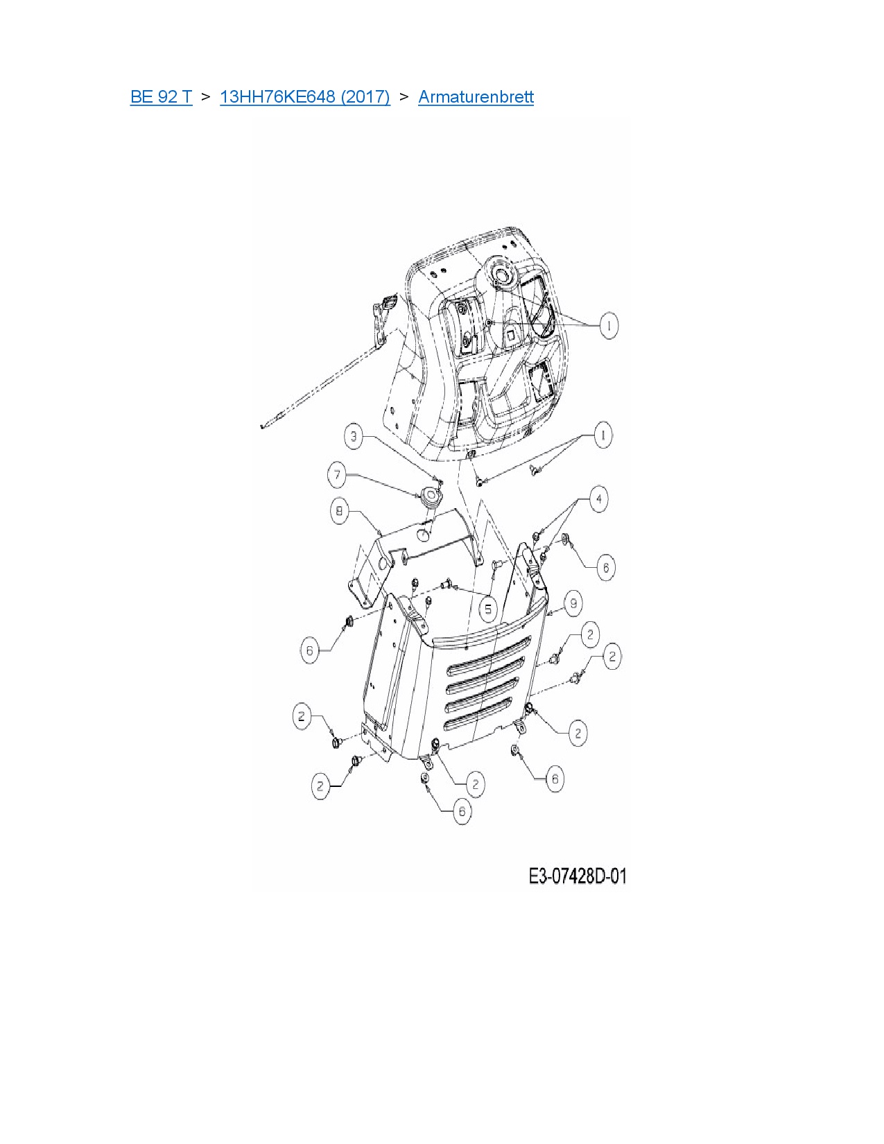 Ersatzteile für Rasentraktor MTD BE 92 T aus der Zeichnung Armaturenbrett (2):