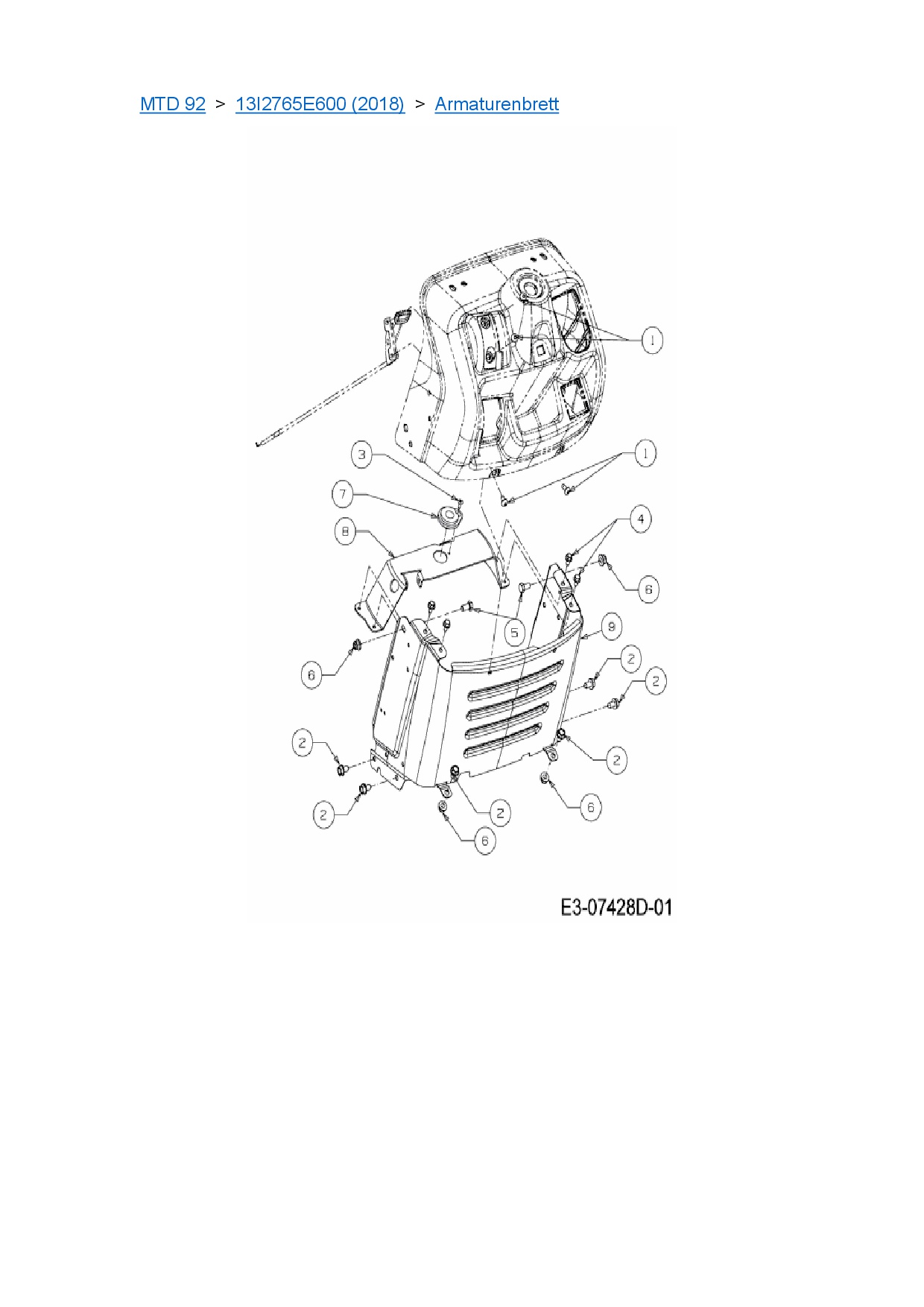Ersatzteile für Rasentraktor MTD MTD 92 aus der Zeichnung Armaturenbrett (2):