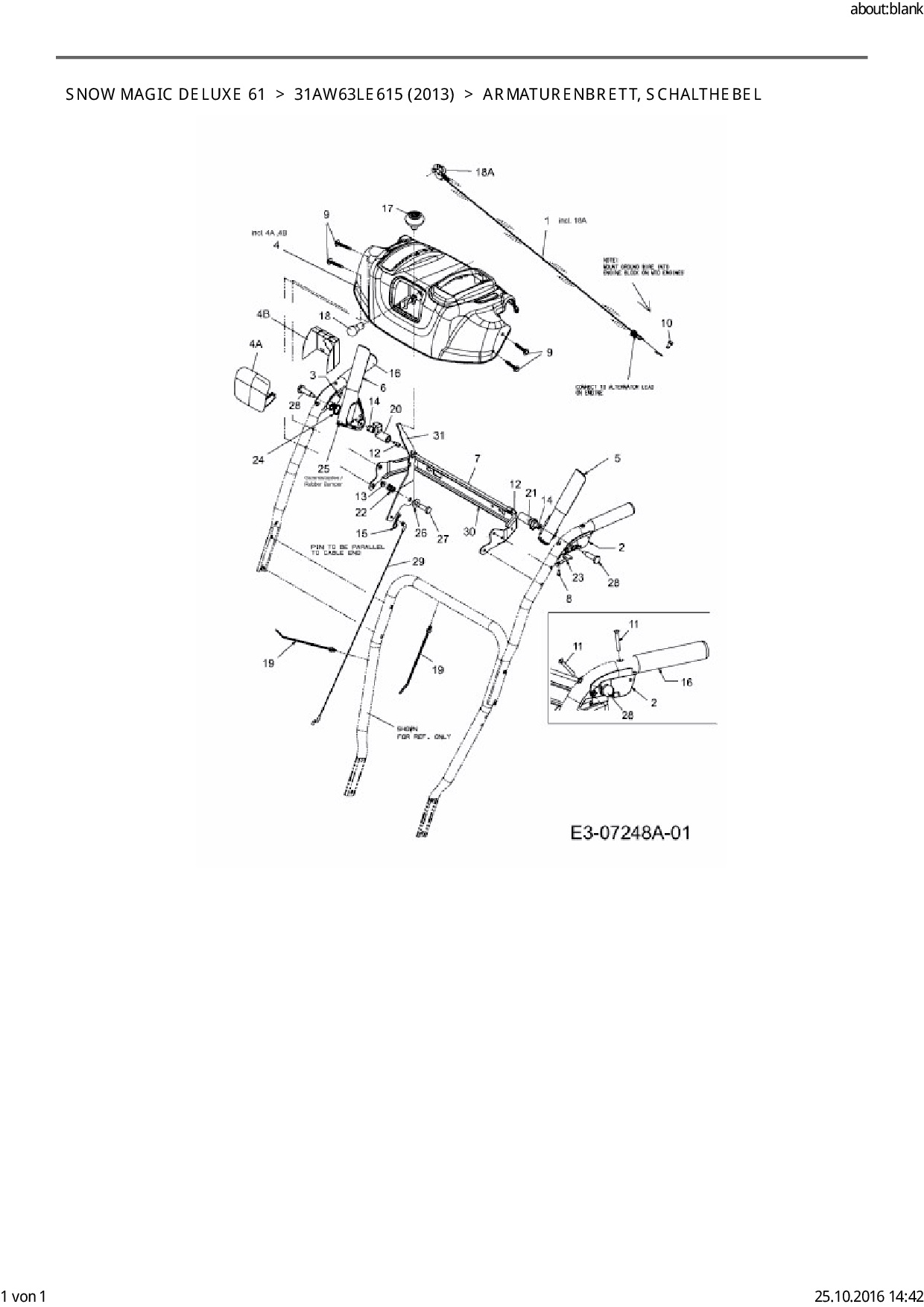 Ersatzteile für Schneefräse Black Edition Snow Magic Deluxe 61 aus der Zeichnung Armaturenbrett, Handhebel: