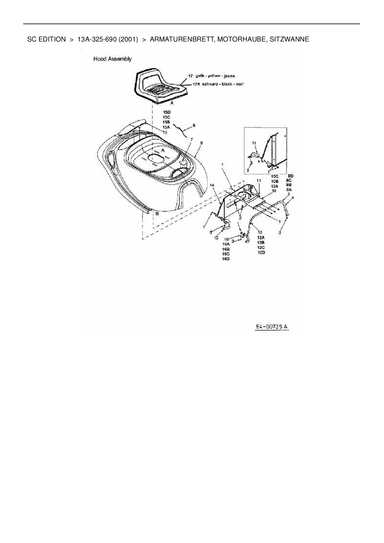 Ersatzteile für Rasentraktor Gutbrod SC Edition aus der Zeichnung Armaturenbrett, Motorhaube, Sitzwanne: