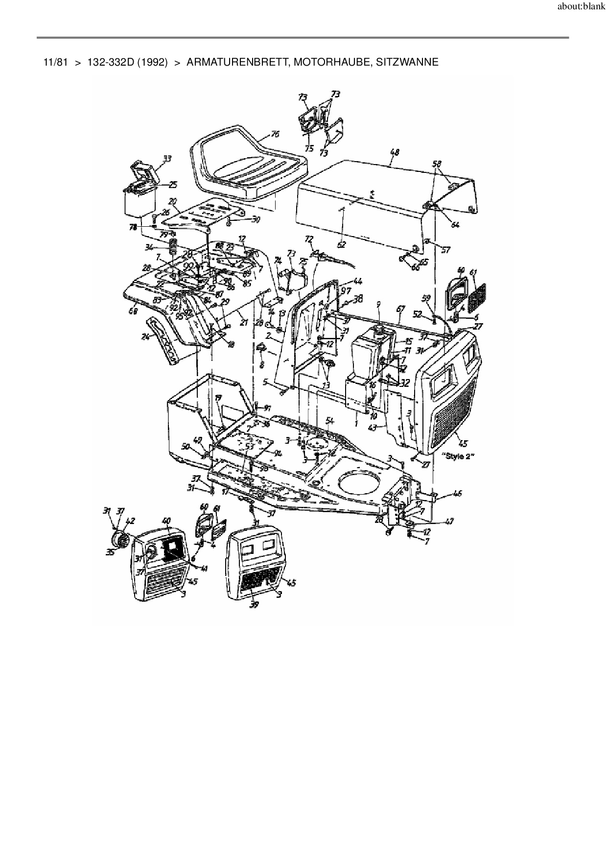 Download Ersatzteil-Zeichnung MTD 11/81 Zeichnung Armaturenbrett, Motorhaube, Sitzwanne (PDF-Format)