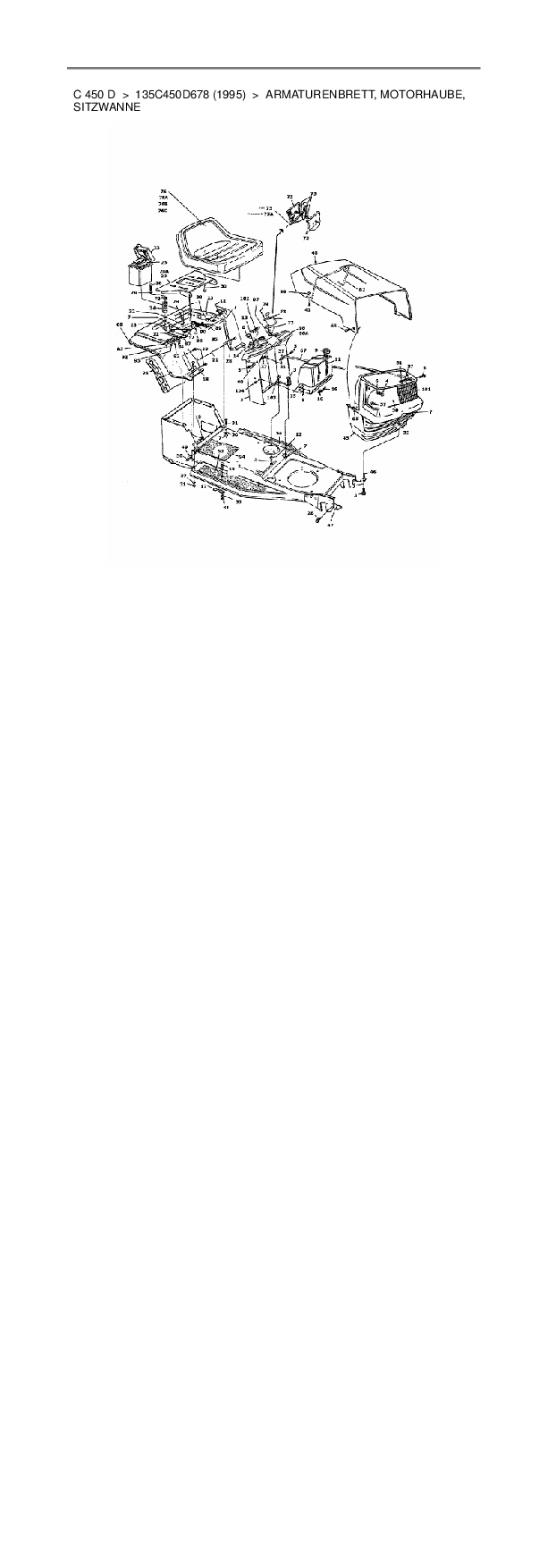Ersatzteile für Rasentraktor MTD C 450 D aus der Zeichnung Armaturenbrett, Motorhaube, Sitzwanne: