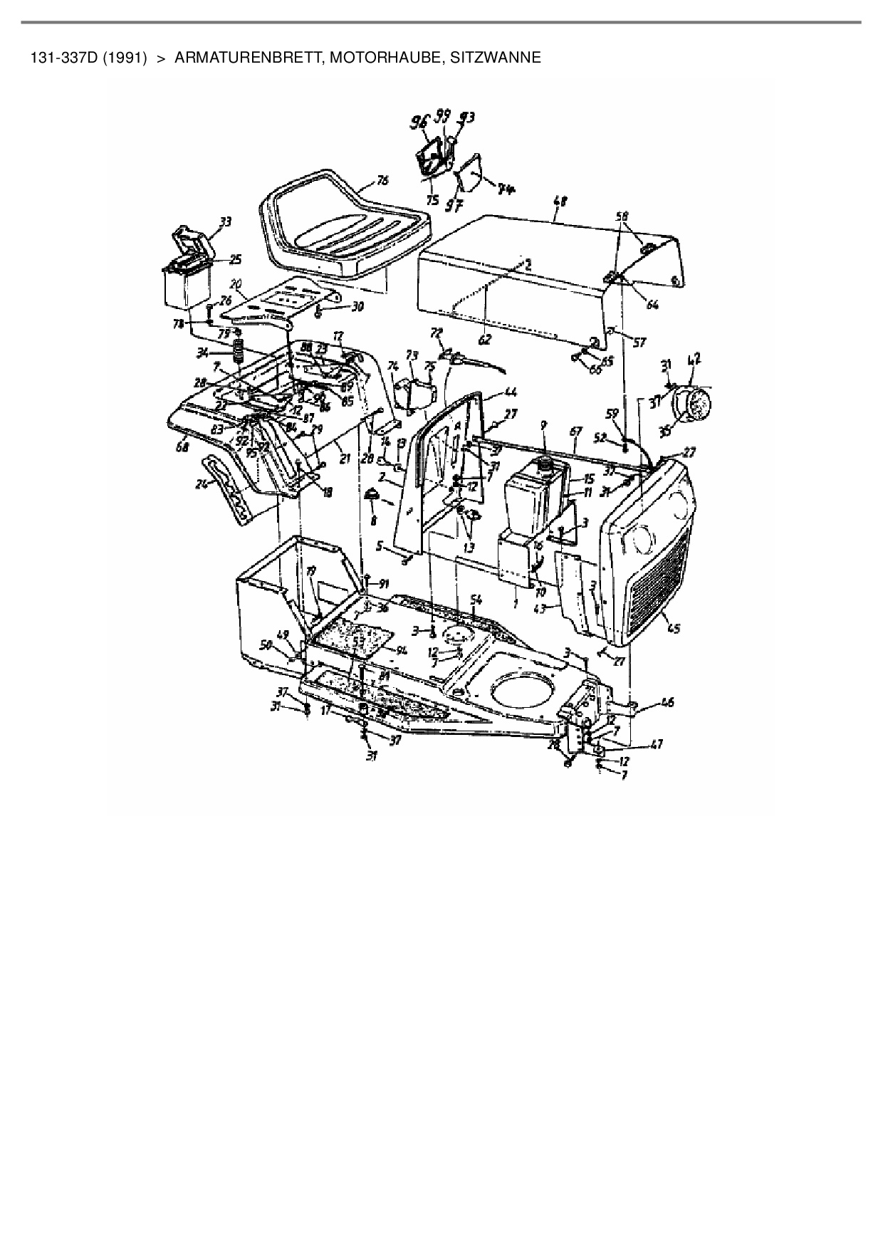 Ersatzteile für Rasentraktor Columbia 111/810 aus der Zeichnung Armaturenbrett, Motorhaube, Sitzwanne: