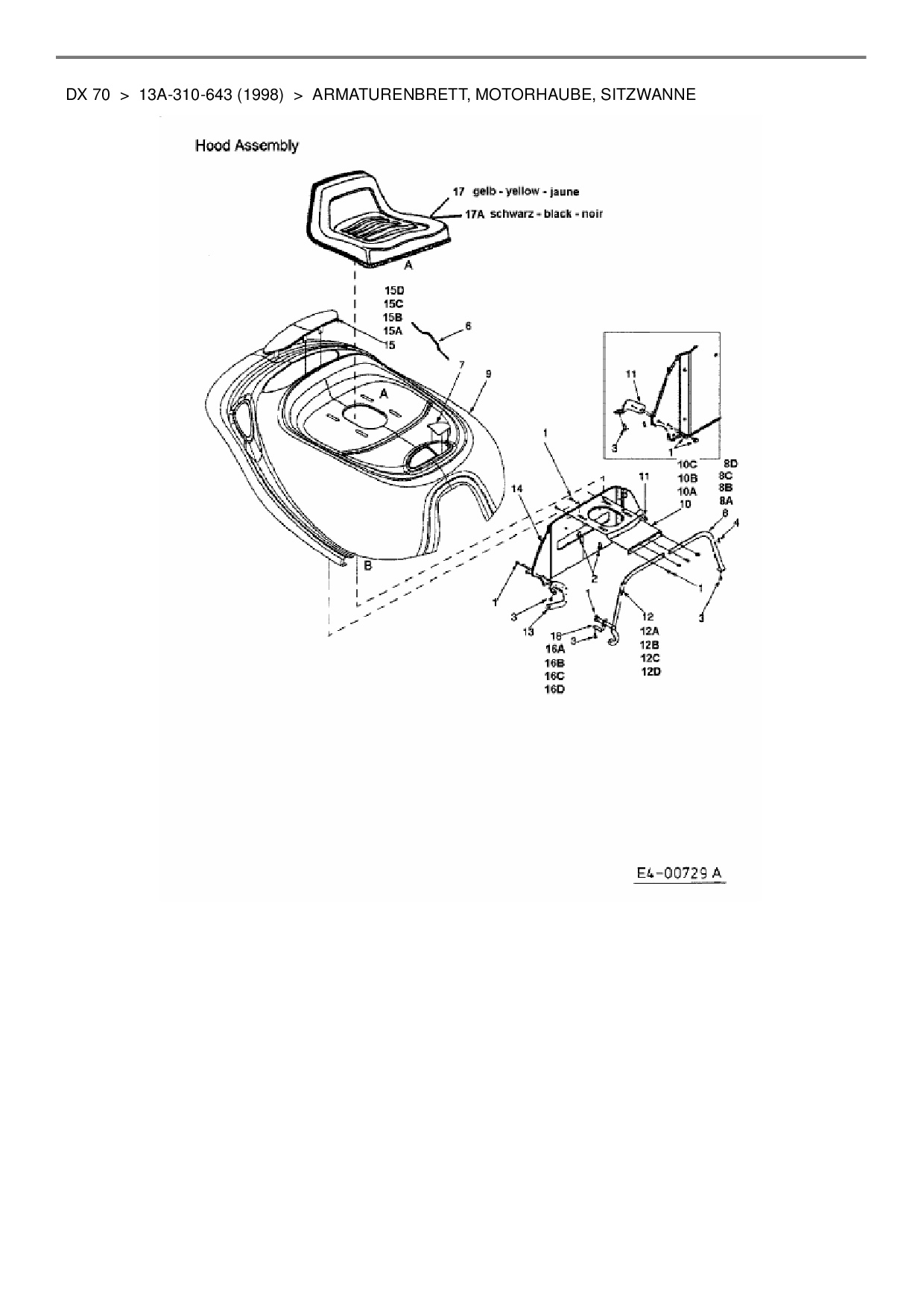 Ersatzteile für Rasentraktor Yard-Man DX 70 aus der Zeichnung Armaturenbrett, Motorhaube, Sitzwanne: