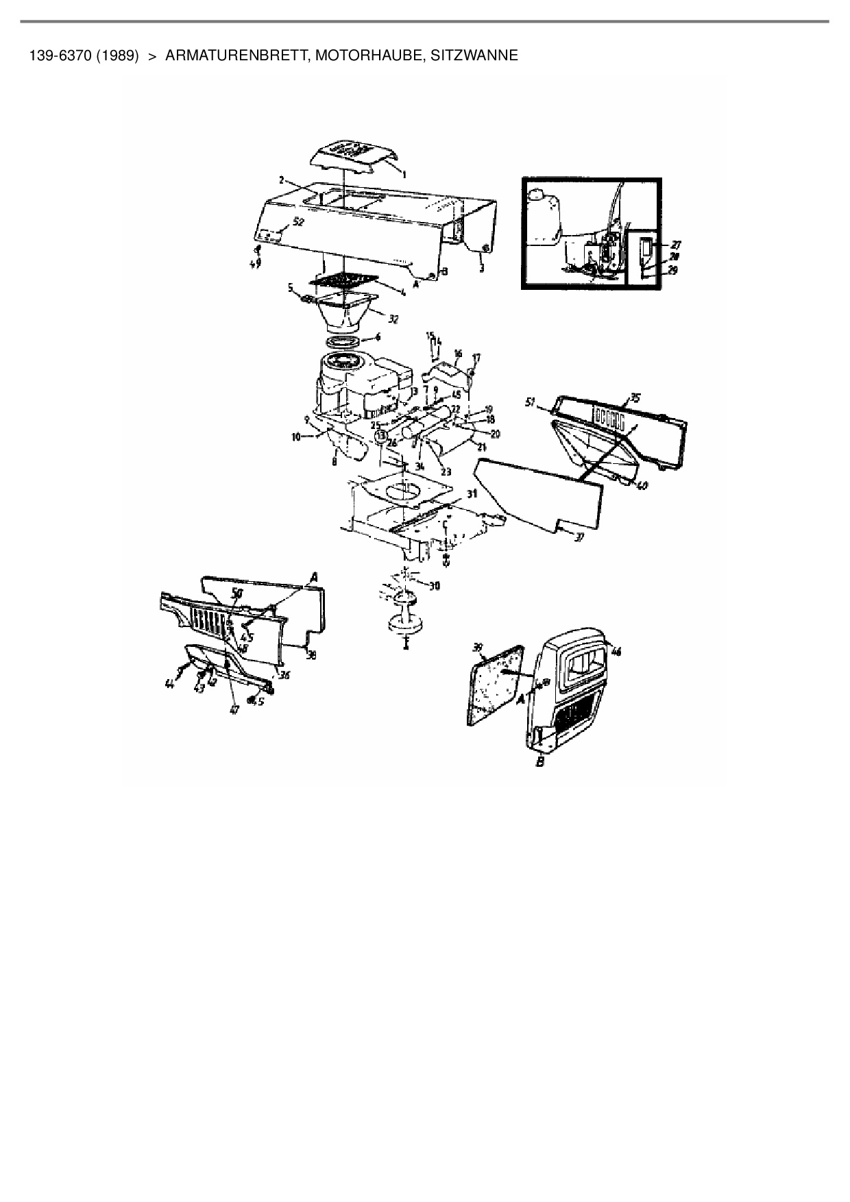 Ersatzteile für Rasentraktor Columbia 111/960 N aus der Zeichnung Armaturenbrett, Motorhaube, Sitzwanne: