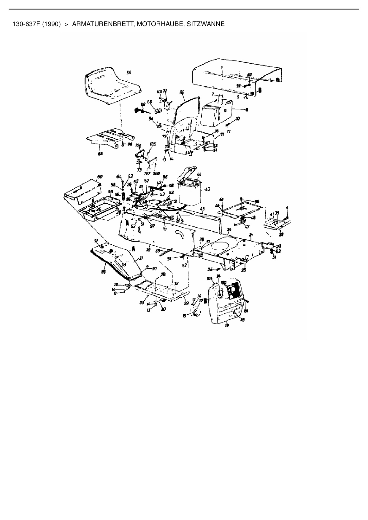 Ersatzteile für Rasentraktor Columbia 111/960 N aus der Zeichnung Armaturenbrett, Motorhaube, Sitzwanne: