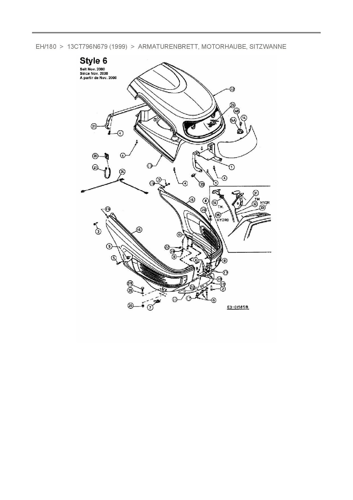 Ersatzteile für Rasentraktor White EH/180 aus der Zeichnung Armaturenbrett, Motorhaube, Sitzwanne: