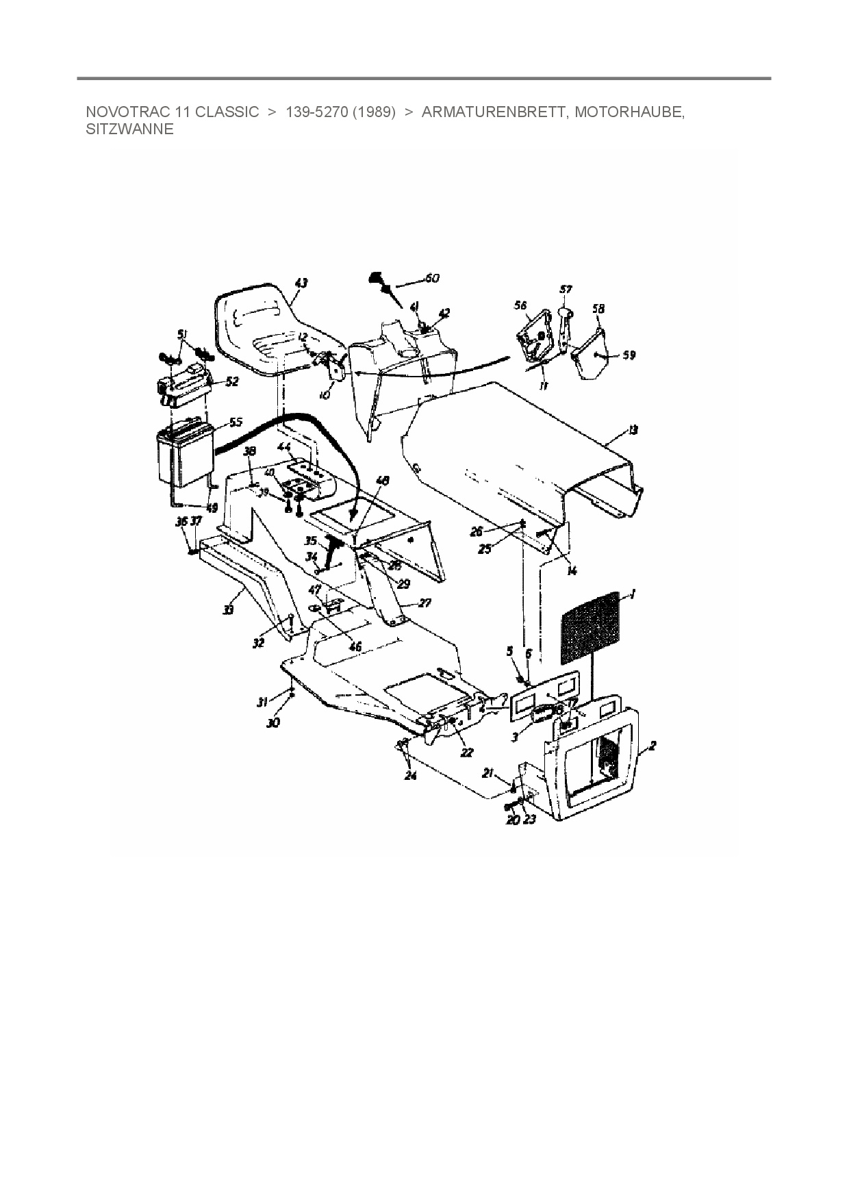 Ersatzteile für Rasentraktor Novotrac NOVOTRAC 11 Classic aus der Zeichnung Armaturenbrett, Motorhaube, Sitzwanne: